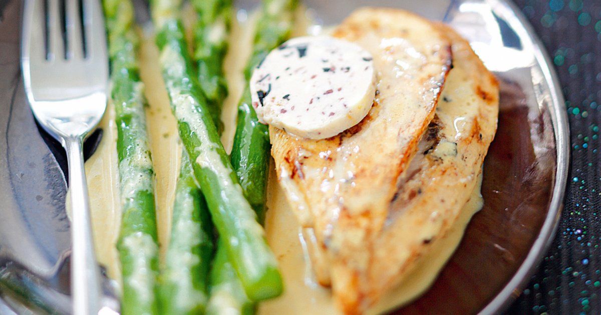 - Suprême de poulet farci aux champignons, sauce Champagne & nominettes.